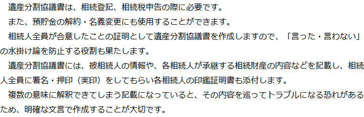 遺産分割協議書の作成