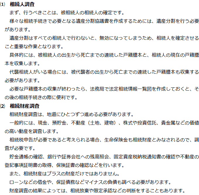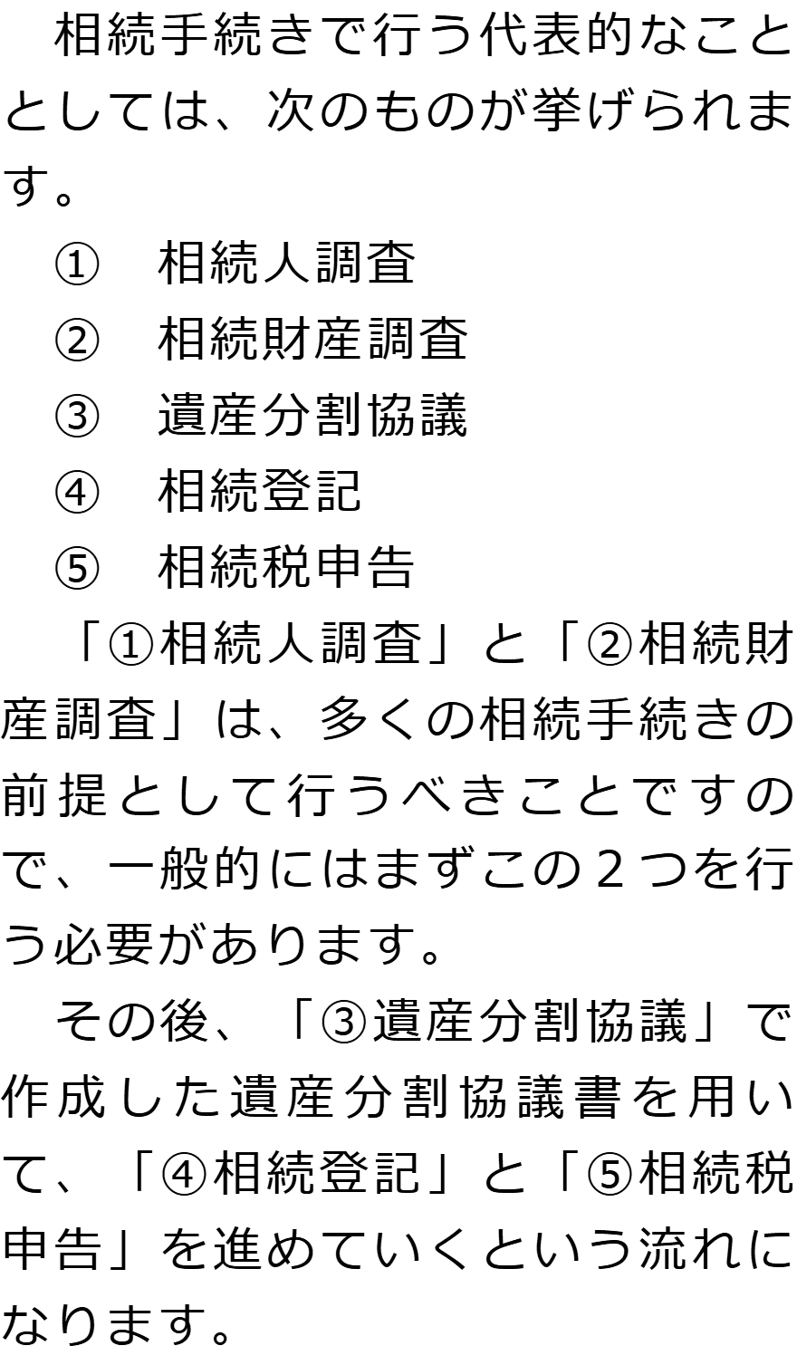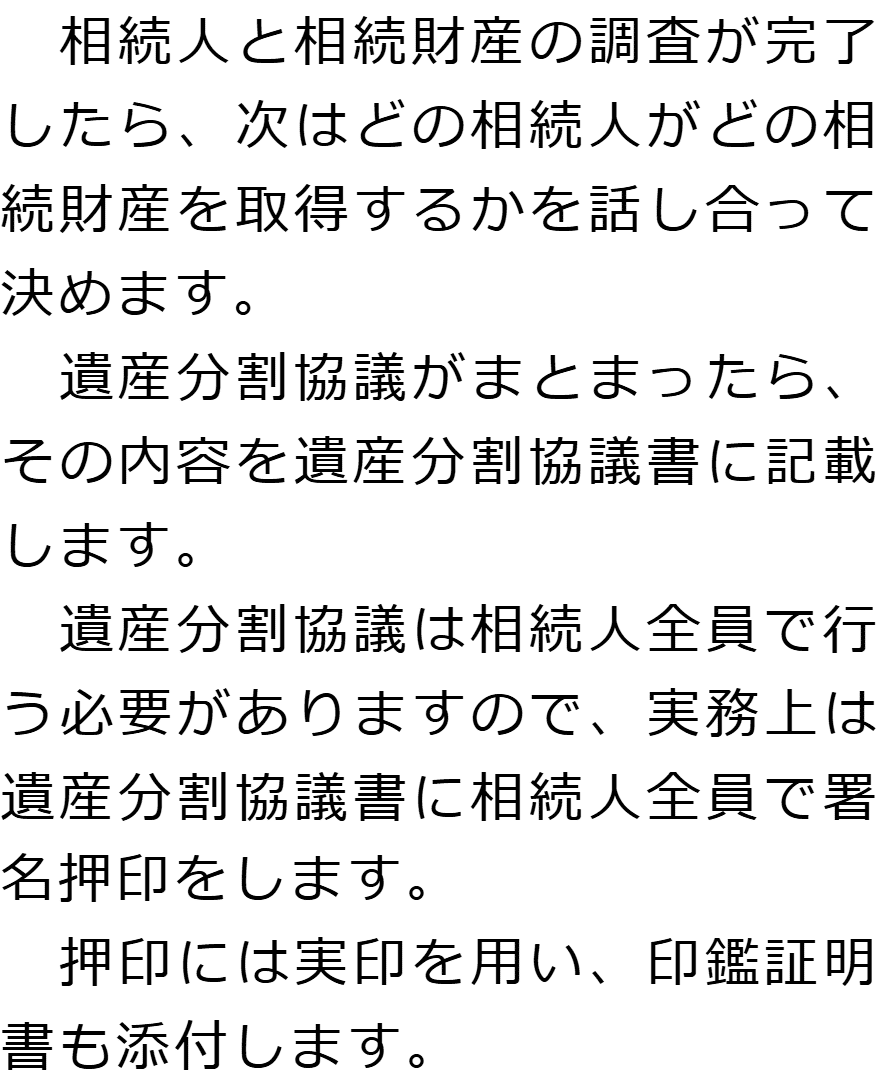 相続手続きの必要事項に関するQ&AQ相続手続きでは何をする必要がありますか?Q相続人調査と相続財産調査では何をする必要がありますか?Q遺産分割では何が必要ですか?Q相続登記はどのような場合に必要ですか?Q相続税申告はどのような場合に必要ですか? Q相続手続きでは何をする必要がありますか?AQ相続人調査と相続財産調査では何をする必要がありますか?AQ遺産分割では何が必要ですか?AQ相続登記はどのような場合に必要ですか?AQ相続税申告はどのような場合に必要ですか?A Q&A(目次)Q&Aトップ相続手続きの必要事項に関するQ&A 受付時間 平日 9時~21時、土日祝 9時~18時 夜間・土日祝の相談も対応します (要予約) 所在地 〒292-0805 千葉県木更津市大和1-1-1おおつビル5F 0120-2403-39 お問合せ・アクセス・地図