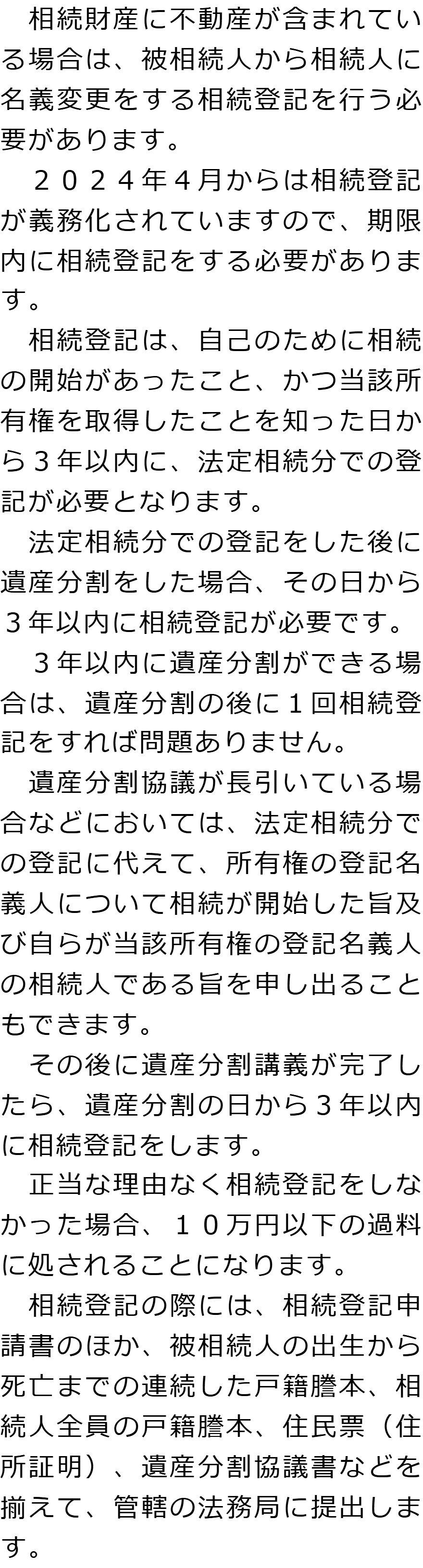 Q&A(目次)Q&Aトップ相続手続きの必要事項に関するQ&A 受付時間 平日 9時~21時、土日祝 9時~18時 夜間・土日祝の相談も対応します (要予約) 所在地 〒292-0805 千葉県木更津市大和1-1-1おおつビル5F 0120-2403-39 お問合せ・アクセス・地図