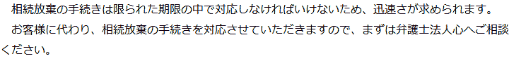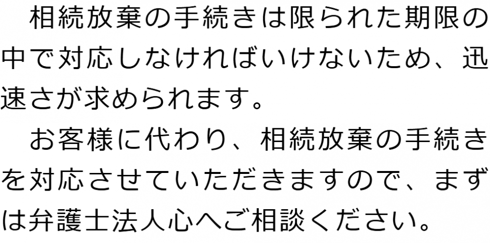 トップ業務内容相続放棄 階層構造▼ 業務内容(目次) 相続放棄 業務内容(目次)業務内容トップ行政書士法人心の業務内容遺言遺産整理相続人調査相続財産調査遺産分割協議書の作成預金・貯金の解約・名義変更証券口座の解約・名義変更自動車の名義変更心グループのその他の業務内容家族信託・民事信託節税対策事業承継遺言の検認相続放棄限定承認遺産分割遺留分侵害額請求相続登記相続税申告相続税調査 受付時間 平日 9時~21時、土日祝 9時~18時 夜間・土日祝の相談も対応します (要予約) 所在地 〒292-0805 千葉県木更津市大和1-1-1おおつビル5F 0120-2403-39 お問合せ・アクセス・地図