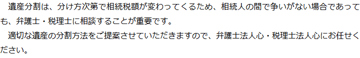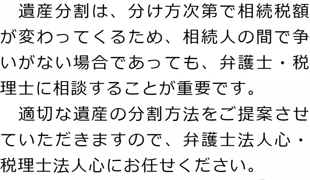 トップ業務内容遺産分割 階層構造▼ 業務内容(目次) 遺産分割 業務内容(目次)業務内容トップ行政書士法人心の業務内容遺言遺産整理相続人調査相続財産調査遺産分割協議書の作成預金・貯金の解約・名義変更証券口座の解約・名義変更自動車の名義変更心グループのその他の業務内容家族信託・民事信託節税対策事業承継遺言の検認相続放棄限定承認遺産分割遺留分侵害額請求相続登記相続税申告相続税調査 受付時間 平日 9時~21時、土日祝 9時~18時 夜間・土日祝の相談も対応します (要予約) 所在地 〒292-0805 千葉県木更津市大和1-1-1おおつビル5F 0120-2403-39 お問合せ・アクセス・地図